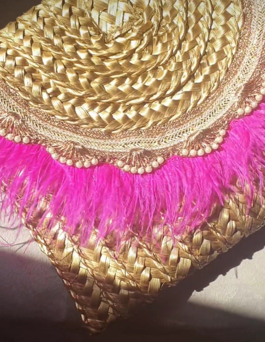Straw Clutch with pink fur.