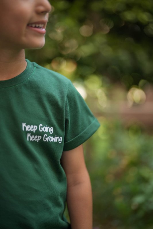 Keep going keep growing T-shirt for boys, made from soft single Egyptian cotton in a classic Cactus cut. The front has slogan for keep going written on chest. Cool and comfortable to wear. This casual tee has short sleeves and a classic ribbed crew neck. Elevate your boy wardrobe with our exclusive T-shirts designed solely for our new concept stores and online visitors. This statement piece embodies the essence of the playtime that never ends. Meanwhile Cactus T-shirt is soft & cut in that just-relaxed enough way we always get right. Wear it with jeans or shorts, layered under jacket so your exclusive piece peeks out.