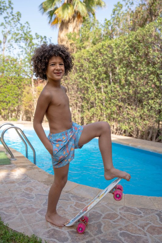 Fun blue swim shorts for little boys with a cute wonderful sea creatures design, it will definitely steal little boys’s heart. Containing quality specialized fabrics that protects against the sun’s UV rays. It is soft, elasticated, a inner soft mesh lining and thanks to its drawstrings, it fits perfectly!