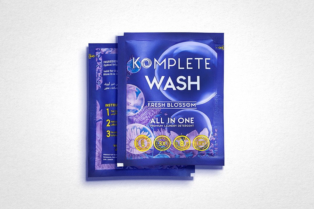 Hi, I'm Komplete Wash. I'm a concentrated laundry detergent gel. But I'm not like any other detergents. I'm here to make your laundry process easier, better and more affordable. I'm safe for you and your family as I do not contain caustic soda or any harsh ingredients. I don't cause any allergies or skin rashes and protect your clothes from damage over time. Use me for white, dark and colored clothes in automatic and semi-automatic washing machines. I clean without foam so I don't flood or damage your washing machine. I also smell like freshness and can treat your stains. If you have a heavy stain just pre-treat it with me before washing. I'm dosed for a wash load of 8 kg. If your washing machine is 8 kg or less, use one sachet, if your washing machine is 9 kg or more, use two sachets. I am also compact, so I don't take a lot of space and you can carry me anywhere. Lastly but not least, I'm proudly made in Egypt with European high quality ingredients and can't wait for you to try me. Normal use: One sachet is sufficient for washing and removing stains for a washing machine up to 8 kilos. And 2 sachets for washing machines more than 8 Kilos. Important Note: Please do not add any other laundry products while washing with Komplete Wash. 1. Tear the sachet 2. Add gel to the detergent drawer 3. No other additives needed. 4. Happy laundry day! Stains treatment: We recommend pretreating tough stains for excellent results. Directions for pre-treatment are below: Step 1: Rinse your stain. Use a few drops of Komplete Wash gel on the stain, rub gently the stained areas and let it sit for 5-10 minutes. Step 2: Add Komplete Wash to your detergent drawer without using any other additives. Step 3: Wash your pre-treated garment in the washing machine with the rest of your laundry.