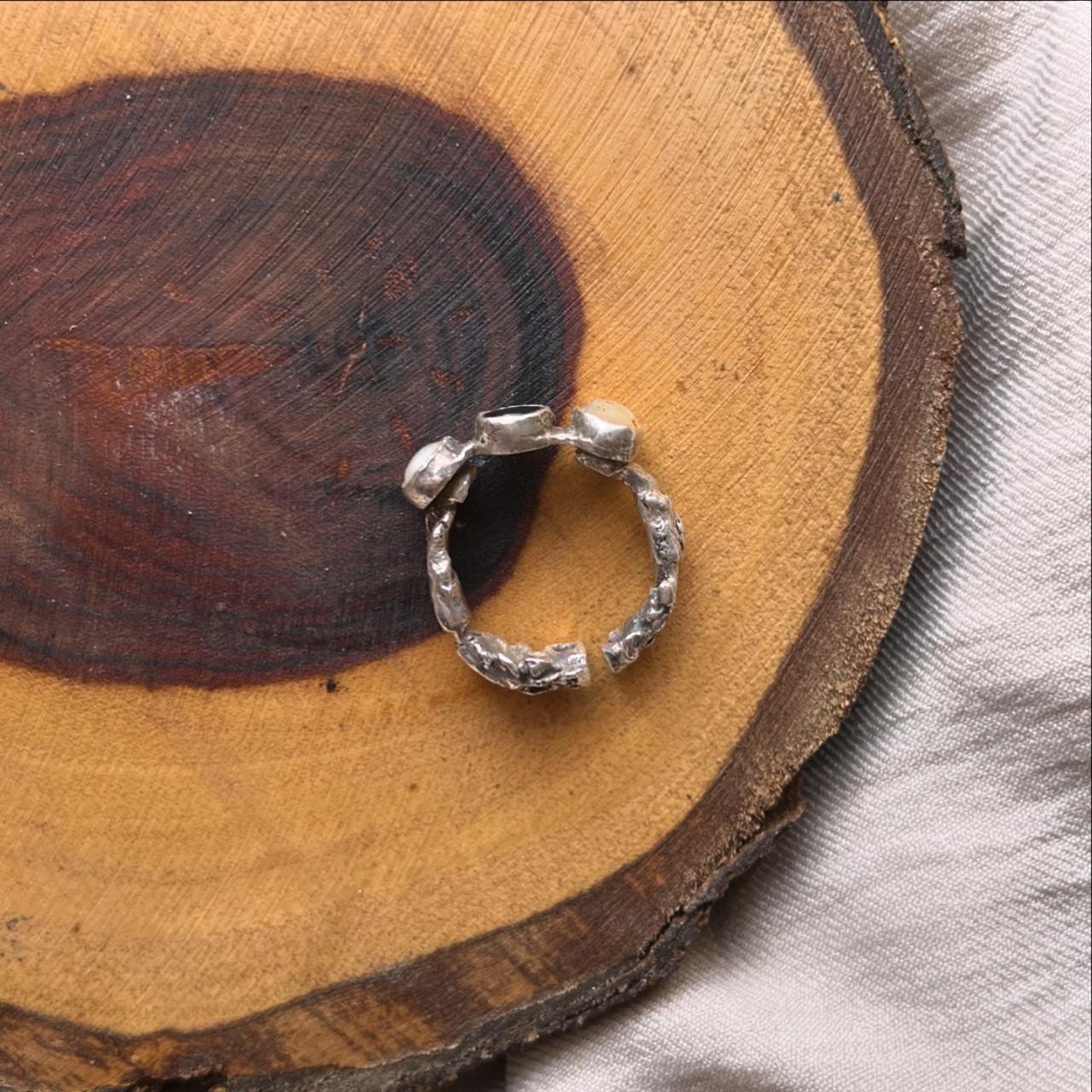 silver free size ring with Black Onyx stone and White Agate natural stone