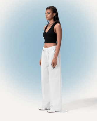 "KAVA Parachute Cut Pants. Feature a 2-pocket Denim. With Mid-Waist and Full length. Gabardine light. Machine Wash."