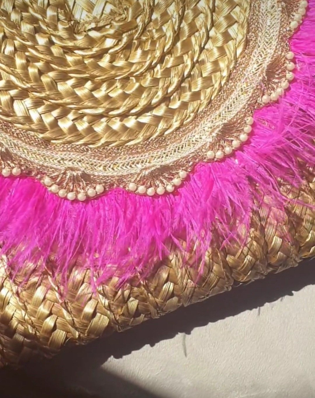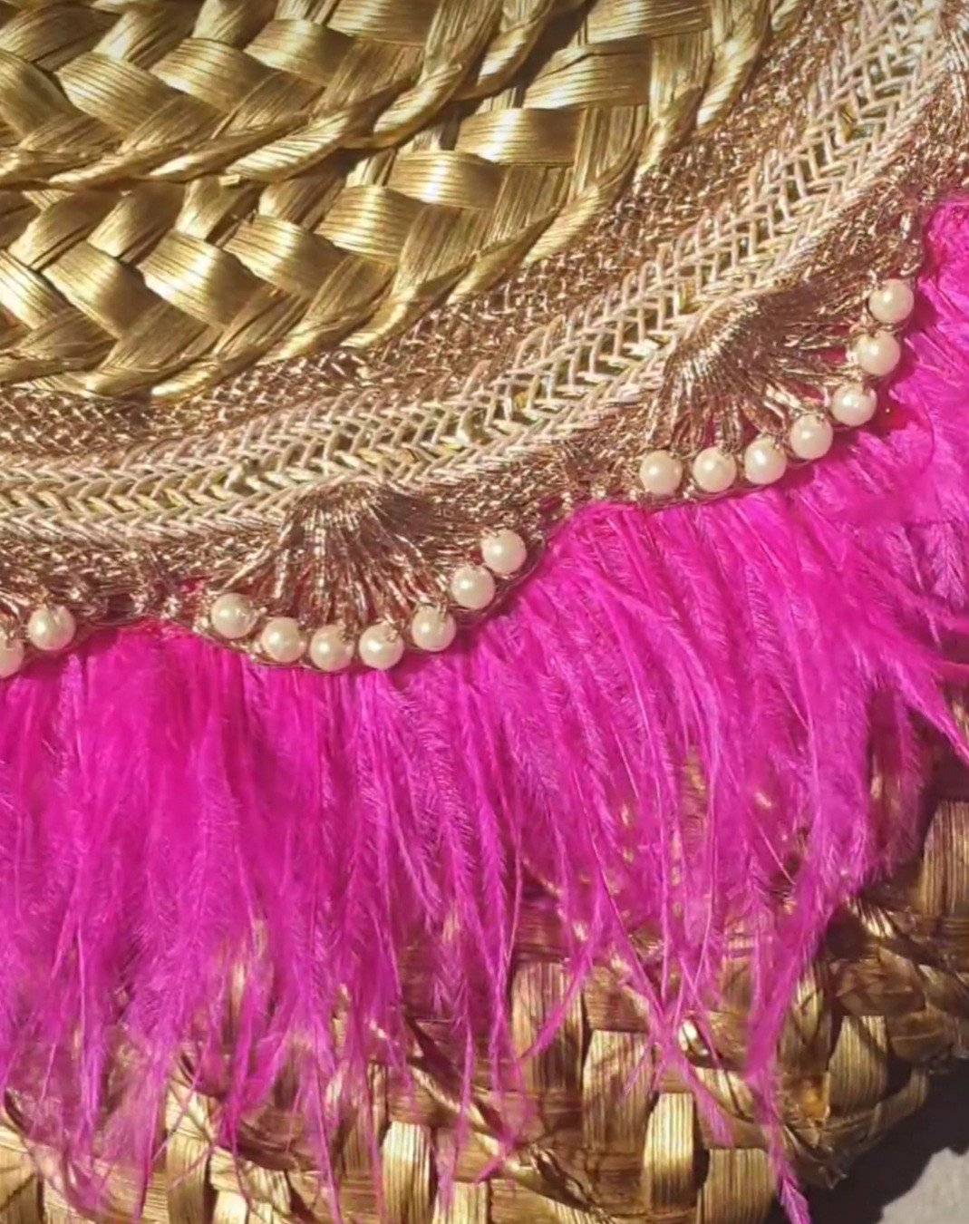 Straw Clutch with pink fur.