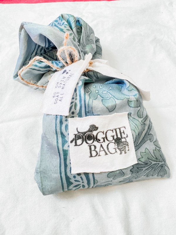 Goat Raw Skin in Up-cycled Silky Doggie Bag