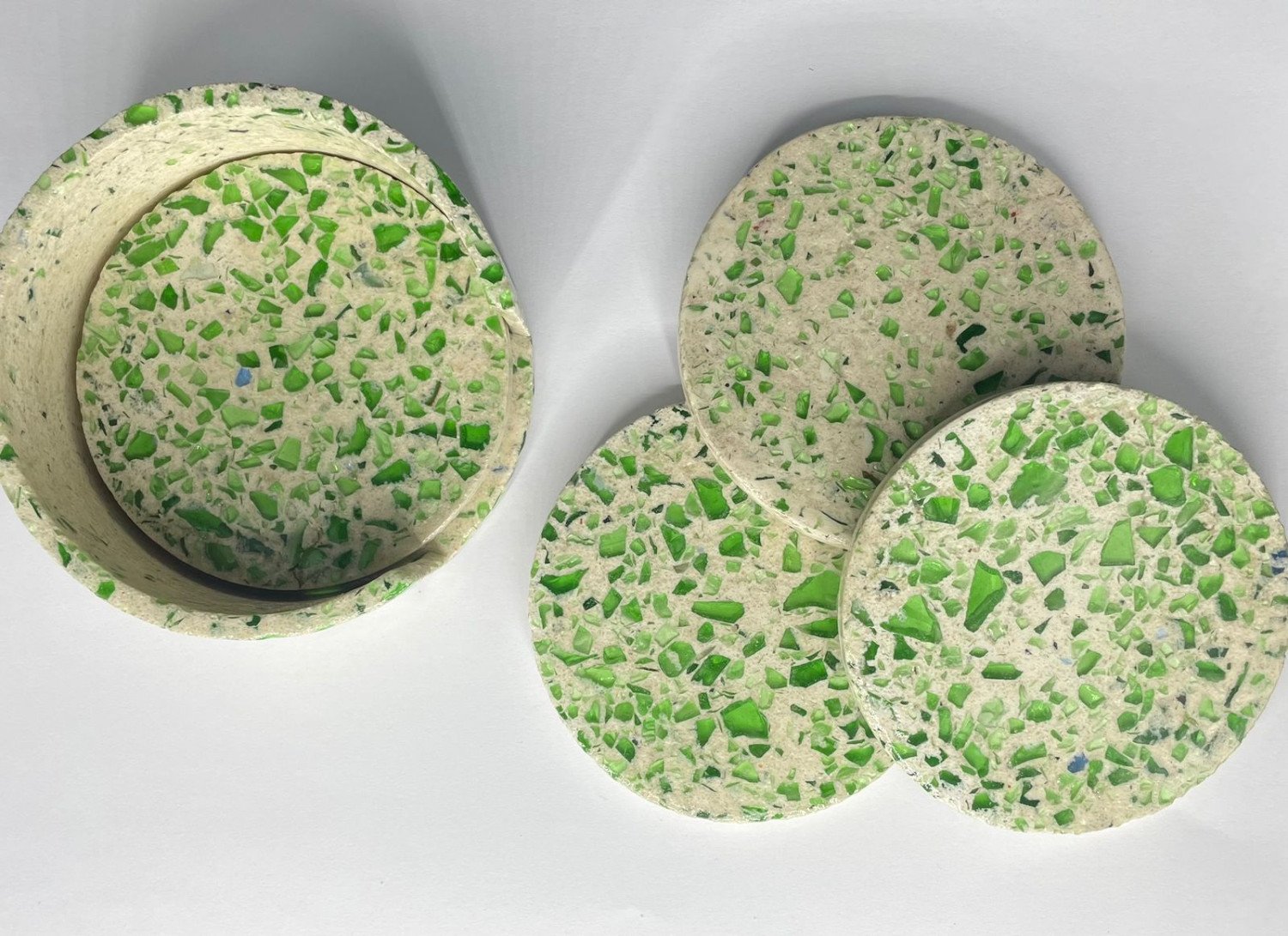 Concrete/Terrazzo coasters made with recycled glass!