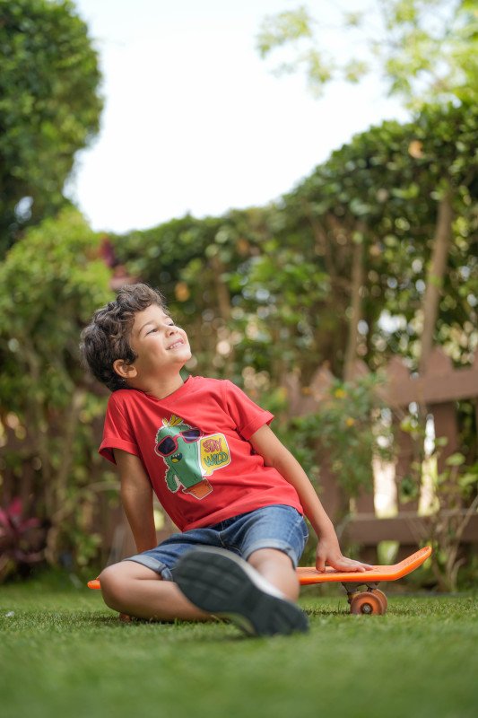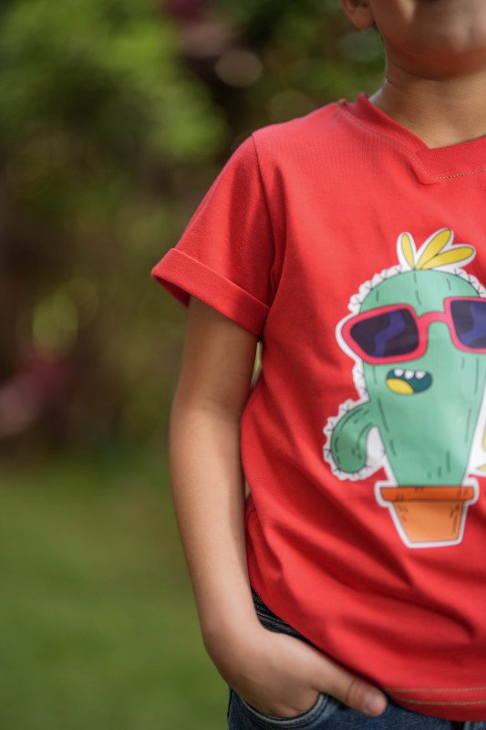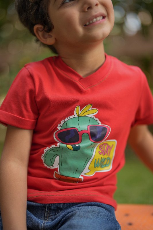 Stay wild T-shirt for boys, made from soft single Egyptian cotton in a classic Cactus cut. The front has a fun print of the iconic Cool Cactus wearing a sunglasses. Cool and comfortable to wear. This casual tee has short sleeves and a classic ribbed crew neck. Elevate your boy wardrobe with our exclusive T-shirts designed solely for our new concept stores and online visitors. This statement piece embodies the essence of the playtime that never ends. Meanwhile Cactus T-shirt is soft & cut in that just-relaxed enough way we always get right. Wear it with jeans or shorts, layered under jacket so your exclusive piece peeks out.