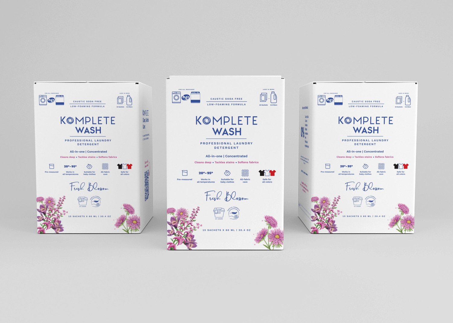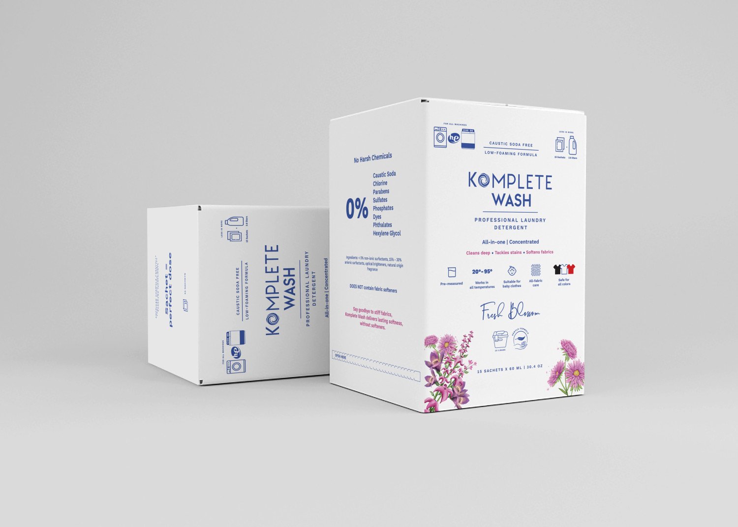 Hi, I'm Komplete Wash. I'm a concentrated laundry detergent gel. But I'm not like any other detergents. I'm here to make your laundry process easier, better and more affordable. I'm safe for you and your family as I do not contain caustic soda or any harsh ingredients. I don't cause any allergies or skin rashes and protect your clothes from damage over time. Use me for white, dark and colored clothes in automatic and semi-automatic washing machines. I clean without foam so I don't flood or damage your washing machine. I also smell like freshness and can treat your stains. If you have a heavy stain just pre-treat it with me before washing. I'm dosed for a wash load of 8 kg. If your washing machine is 8 kg or less, use one sachet, if your washing machine is 9 kg or more, use two sachets. I am also compact, so I don't take a lot of space and you can carry me anywhere. Lastly but not least, I'm proudly made in Egypt with European high quality ingredients and can't wait for you to try me. Normal use: One sachet is sufficient for washing and removing stains for a washing machine up to 8 kilos. And 2 sachets for washing machines more than 8 Kilos. Important Note: Please do not add any other laundry products while washing with Komplete Wash. 1. Tear the sachet 2. Add gel to the detergent drawer 3. No other additives needed. 4. Happy laundry day! Stains treatment: We recommend pretreating tough stains for excellent results. Directions for pre-treatment are below: Step 1: Rinse your stain. Use a few drops of Komplete Wash gel on the stain, rub gently the stained areas and let it sit for 5-10 minutes. Step 2: Add Komplete Wash to your detergent drawer without using any other additives. Step 3: Wash your pre-treated garment in the washing machine with the rest of your laundry.