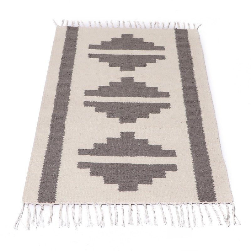 Handwoven Kilim Rug are practical and decorative mats to place around your home or workspace made of 100% wool Specification Size :70*140 cm Matrial :100% wool Colour: White Grey Weight: 1.75 kg Brand : Bazaar Misr Washable marita (Machine wash) Reversible rug (can be use both side) |