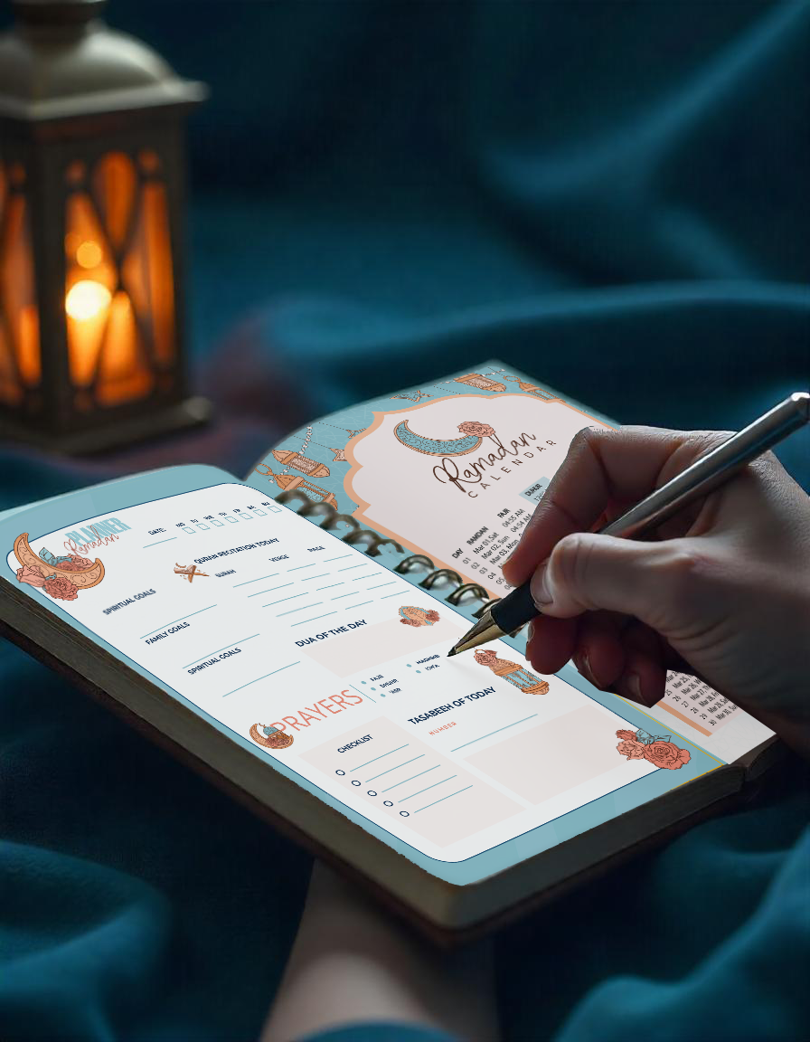 Daily Planner Pages: Track suhoor/iftar, prayers, Quran goals, reflections, and to-do lists.